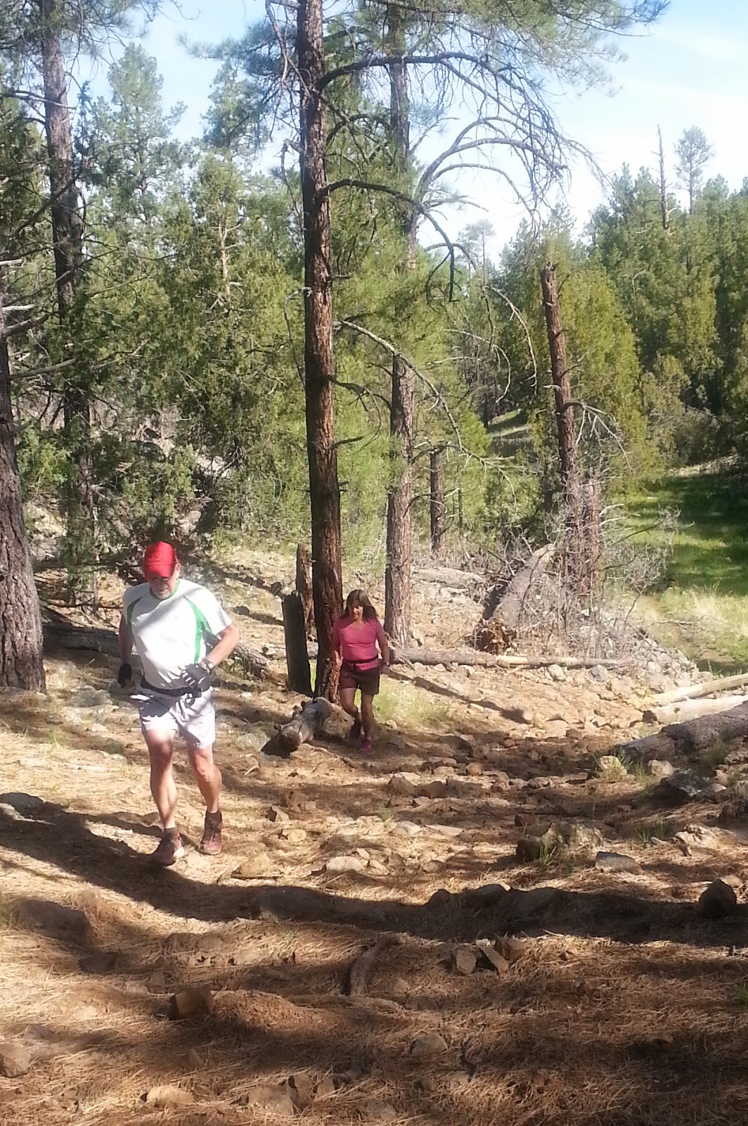 10 NATRA runners once again enjoyed the Sycamore Rim trail to themselves! Knowing we would be running along lush pools of water, Bob the dog whined with excitement all the way on the short 30 minute drive to to the trail head. Before heading out was scared a herd of 30 deer who had been enjoying a nearby drink. We eventually made it to the wilderness overlook, well all except for Neil who had his leg impaled by a stationary Ponderosa. On the return, the greatest threat to our safety were hummingbirds zipping through the forest in search of red flowers! As dry as it has been, the Sycamore Trail had lot of wildflowers and was lush with water. By the end of our 7.5 mile jaunt, we again had the ceremonial gathering around Dow Spring where we re-hydrated with the purest, coldest spring water around! And no rattlesnakes protecting the spring this time!